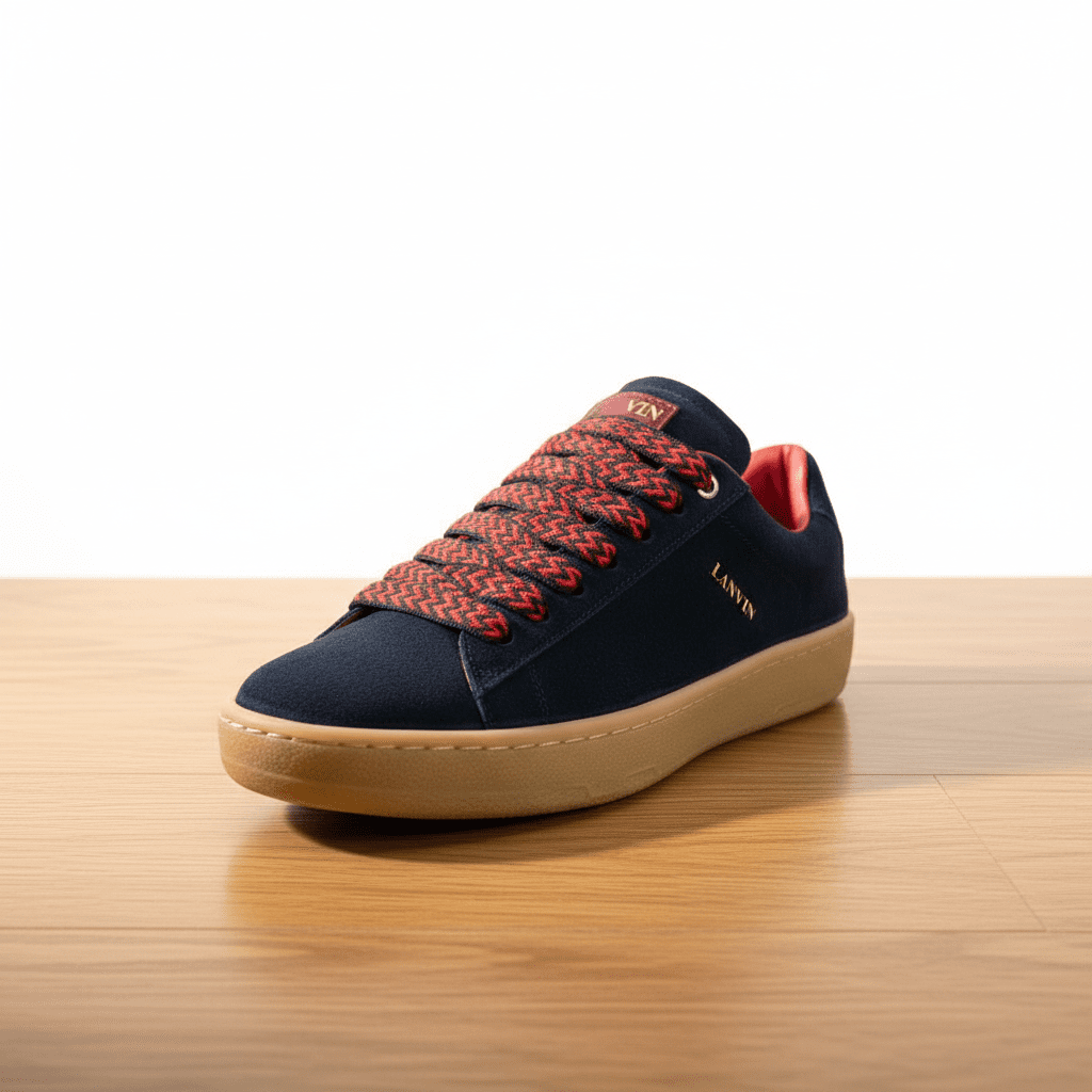 Lanvin Suede Navy Sneakers Red Lace Casual Shoes