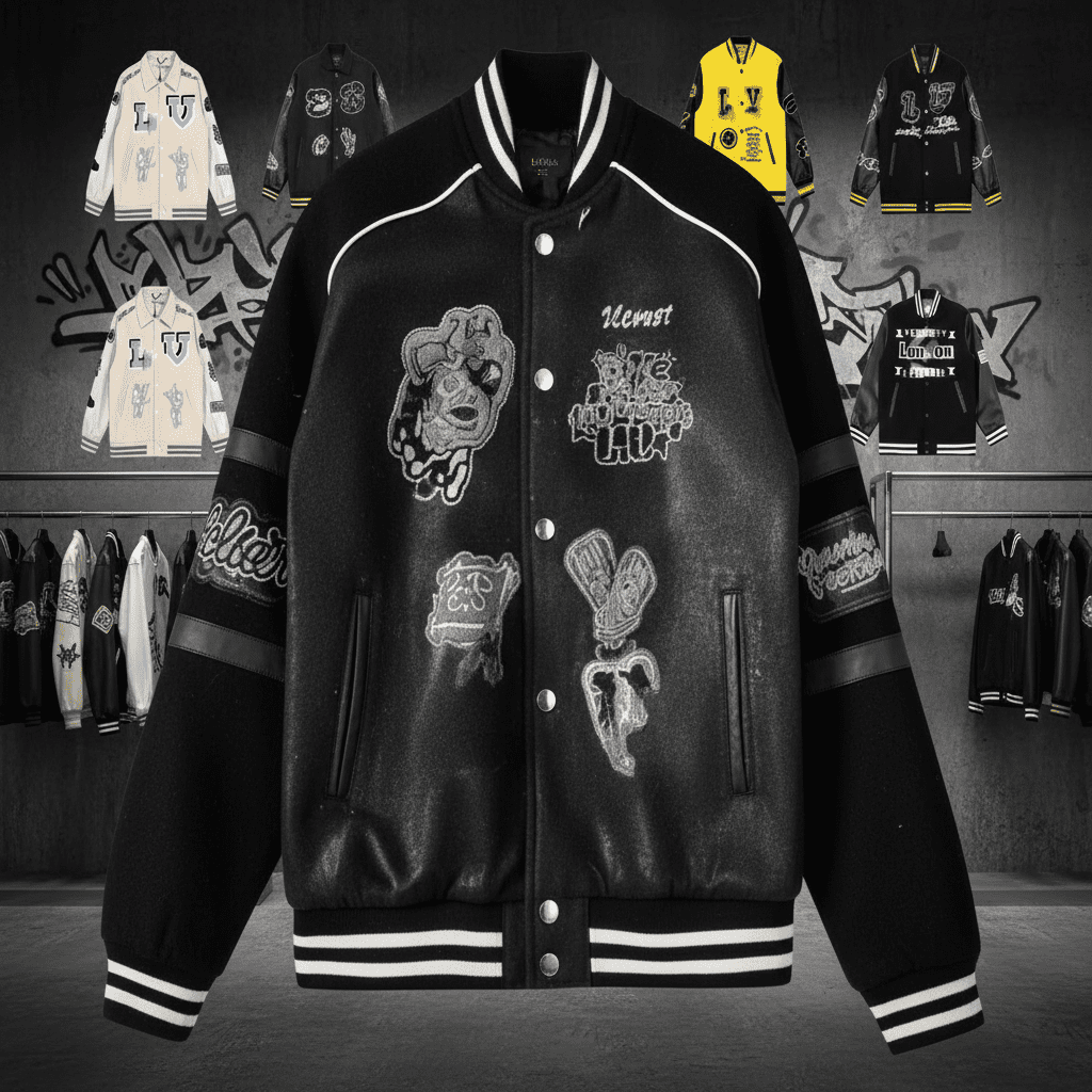 Unisex embroidered baseball jacket blends classic & street style. Multiple colors, cotton-leather mix, iconic logos & playful patches. Stand out with trendy, versatile design!