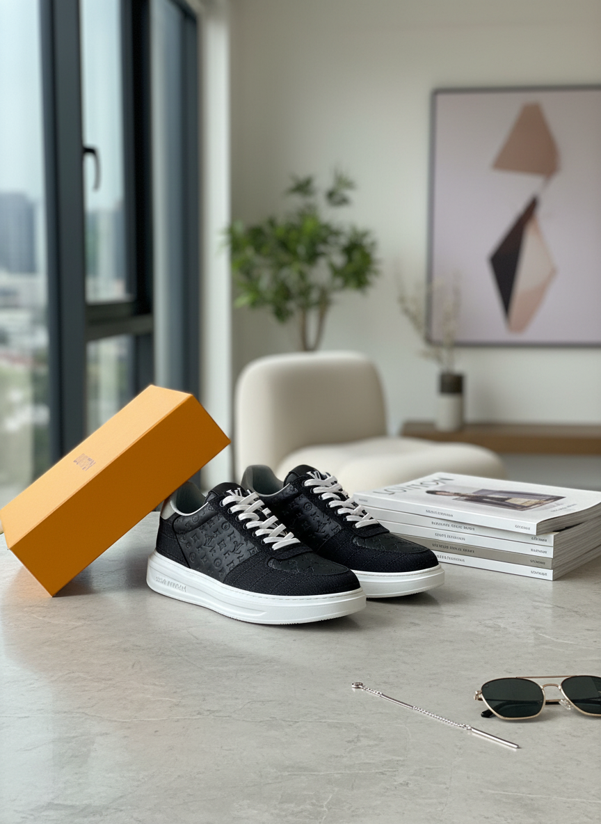 Home / Shoes/ Louis Vuitton Monogram Black Leather Casual Sneakers