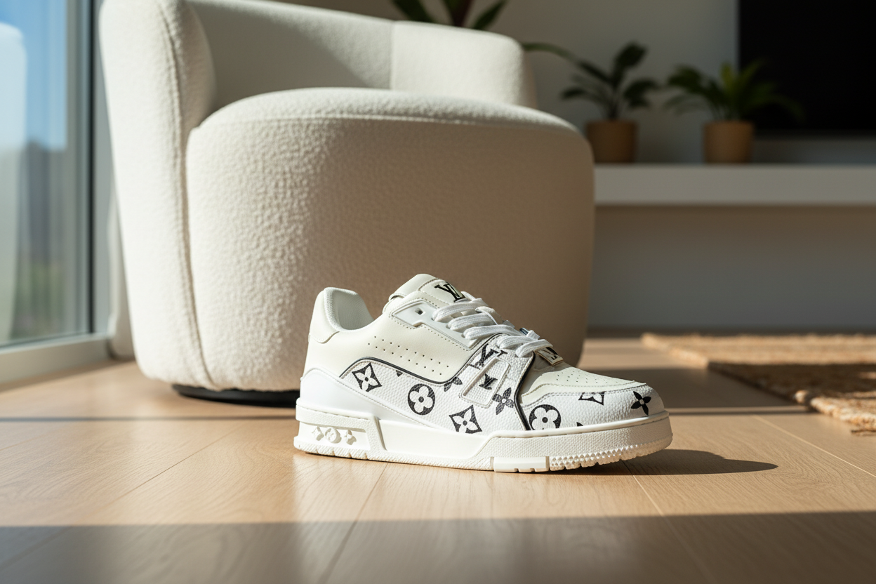 Home / Shoes/ Louis Vuitton Monogram White Leather Sneakers