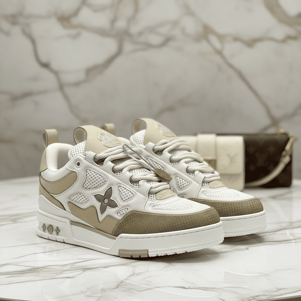 Louis Vuitton Skate Sneaker Italian Calf Leather Breathable Mesh Unisex Ivory Beige