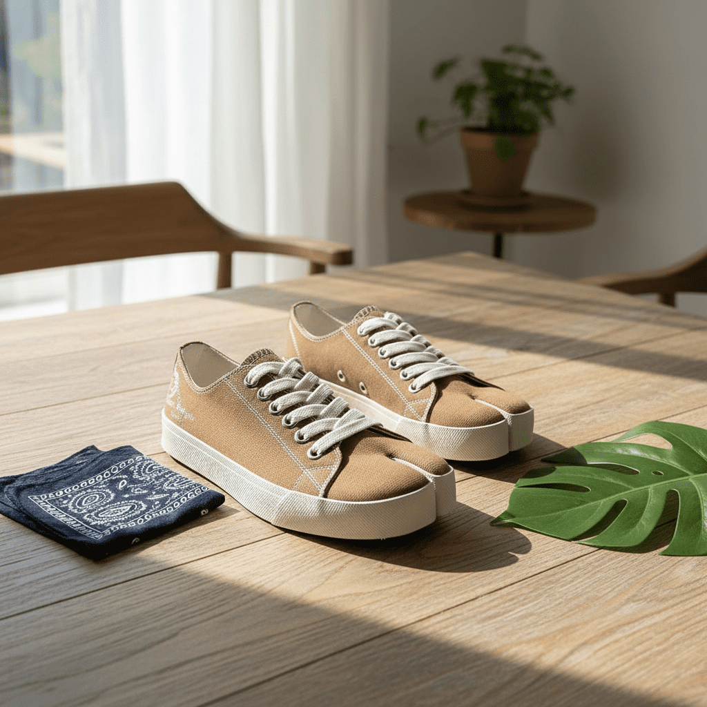 MM6 Brown Canvas Split Toe Sneakers Shoes