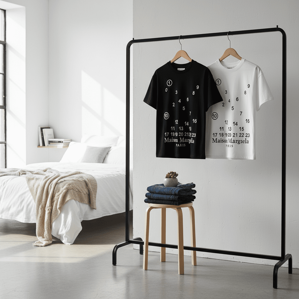 Maison Margiela MM6 Black Number Print T-Shirt, crafted from premium soft cotton. Features signature numeric graphic and logo design. Unisex, minimalist, perfect for daily casual fashion style.