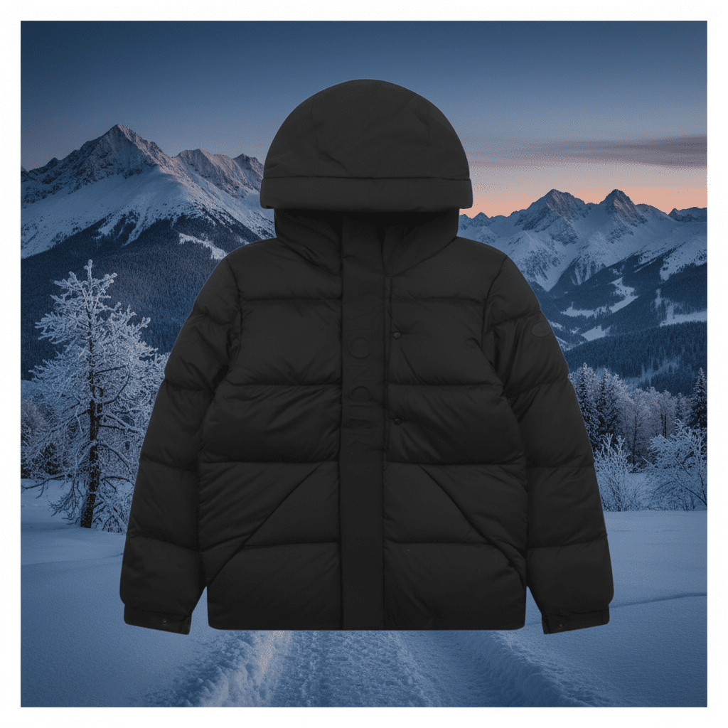 Stay warm in style with this sleek black down jacket, featuring a slim fit, horizontal quilting, and adjustable cuffs for ultimate comfort.