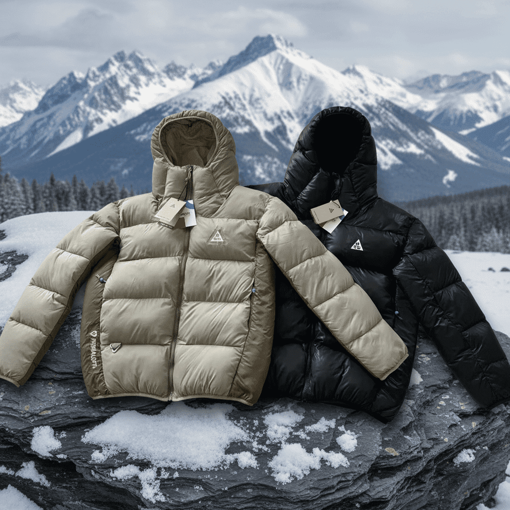Stay warm in style with this ACG embroidered hooded jacket. Multicolor design, premium down fill, and trendy zip-up with a hood. Perfect for winter!