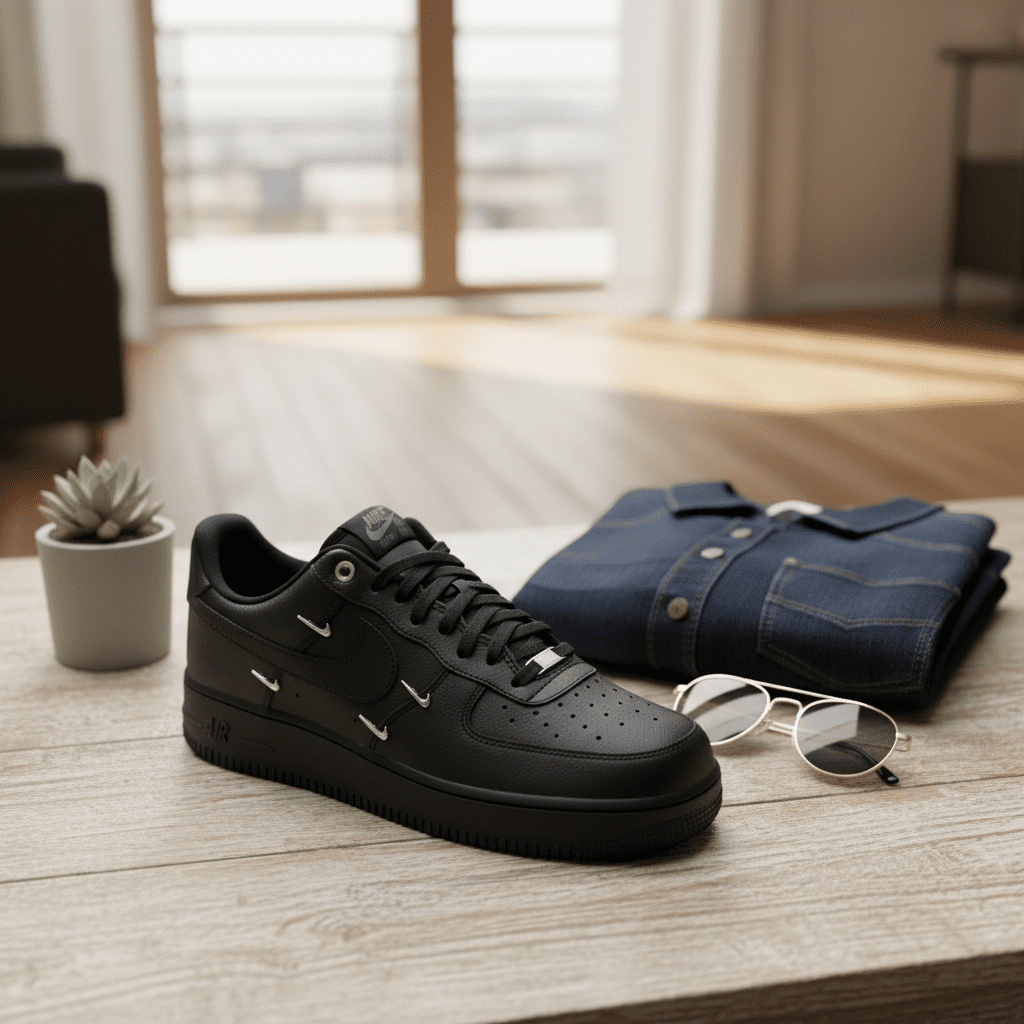 Nike Air Force 1 Black Leather Casual Sneakers