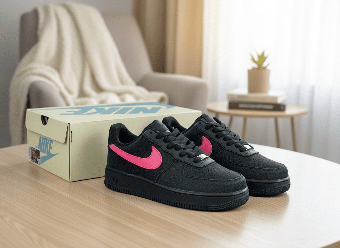 Nike Air Force 1 Black Pink Swoosh Sneakers