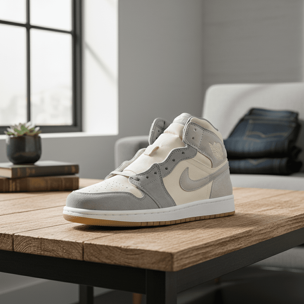 Nike Air Jordan 1 Beige Gray High Top Sneakers