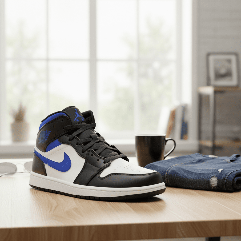 Nike Air Jordan 1 Mid Black Blue Sneakers