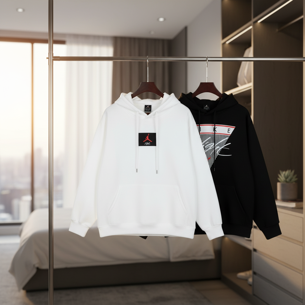 Nike Jordan white hoodie, made from soft cotton for comfort. Features iconic Jumpman logo on chest, unisex streetwear style, perfect for casual looks and everyday wear.