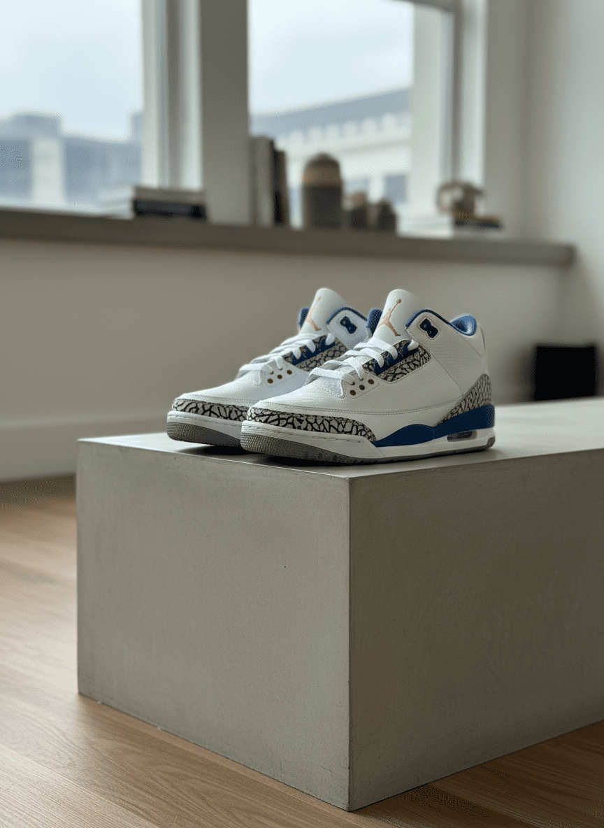 Nike Air Jordan 3 White Blue sneakers feature premium leather with elephant print accents, Air cushioning, classic Jumpman logo, streetwear vibe, unisex design, stylish and durable for daily wear.