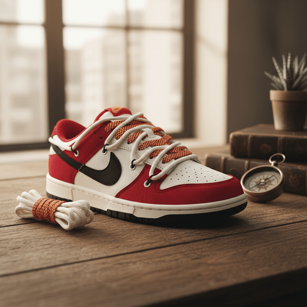 Nike Dunk Red White Sneakers blend suede and leather with a bold black Swoosh, offering street-style flair, unisex comfort, and a versatile sporty design perfect for everyday fashion.