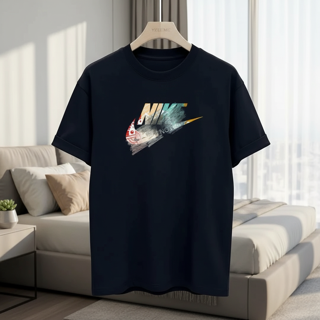 Nike Black Graffiti Print T-Shirt made of premium soft breathable cotton, featuring colorful graffiti-style Nike logo, trendy streetwear unisex design for daily casual fashion wear.