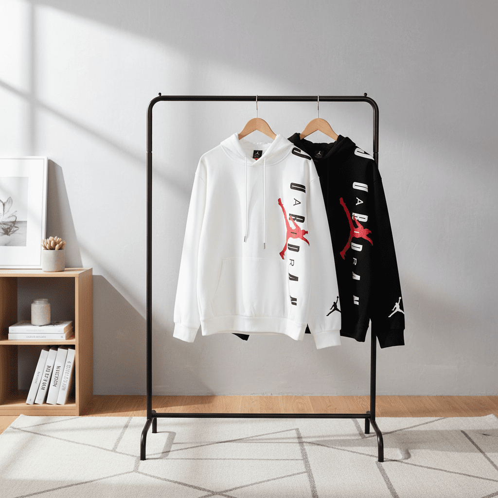 Nike Jordan Hoodie – white unisex cotton sweatshirt with red Jumpman logo and GUARDIAN print, soft breathable fabric, drawstring hood, kangaroo pocket, perfect for streetwear and casual style.