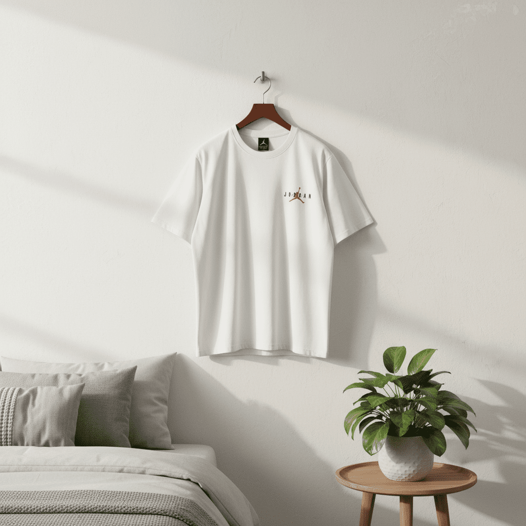 Nike Jordan Series Black & White Short Sleeve T-Shirt, made of premium breathable cotton, with small front logo and large back graphic, street style unisex design for sports or casual wear.