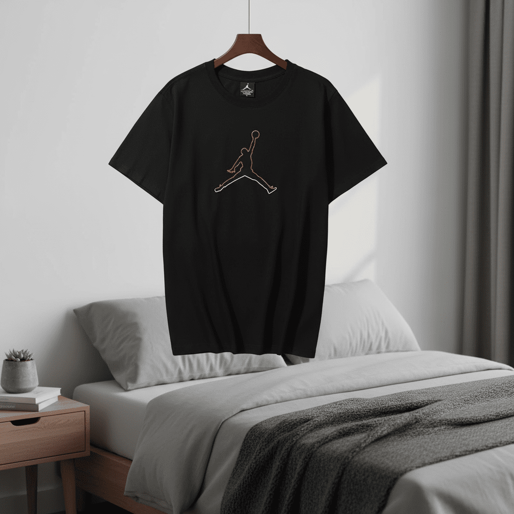 Nike Jordan Black T-Shirt, breathable cotton fabric, gradient red-yellow Jumpman logo on front, classic crew neck, unisex street sport style, perfect for casual and athletic wear.