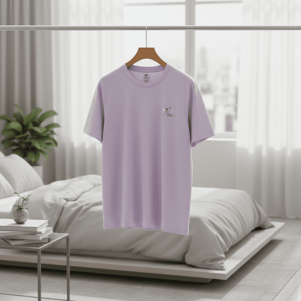 Nike Light Purple Unisex Casual T-Shirt, crafted from premium soft breathable cotton, features a delicate embroidered chest design, minimalist style for daily wear, sporty and stylish comfort.
