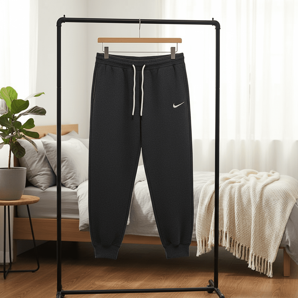 Nike Casual Series Grey Sweatpants made from soft, breathable cotton blend fabric. Jogger design with drawstring waist, iconic Swoosh logo on side, unisex fit, ideal for street style and light workouts.