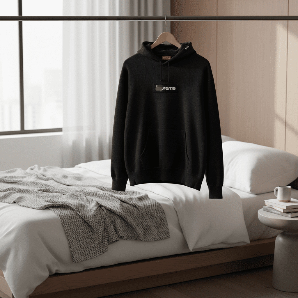 Nike x Supreme Black Hoodie, made from premium cotton for softness and breathability. Features adjustable drawstring hood, iconic logo on chest, and kangaroo pocket. Unisex streetwear essential.