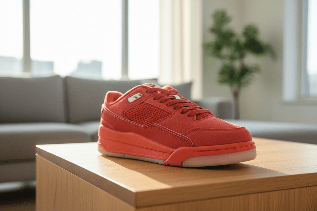 Nike Red Casual Sneakers feature mesh and suede stitching for breathable comfort. Classic lace-up design with gradient orange-red sole brings street-style flair. Unisex, perfect for everyday wear.