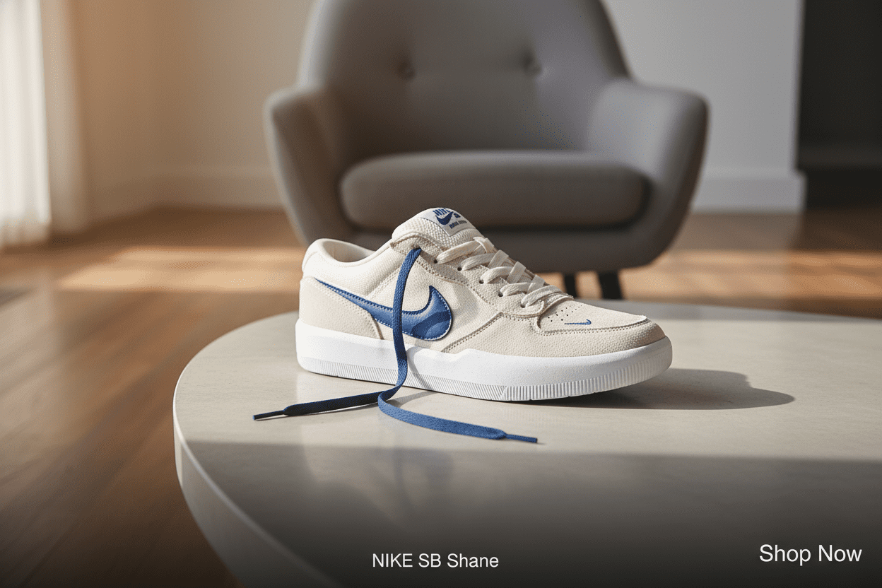 Nike Skate Series Off-White Blue Sneakers combine canvas and suede for comfort and durability, featuring the iconic blue Swoosh for a stylish street look, perfect for daily wear and skateboarding.