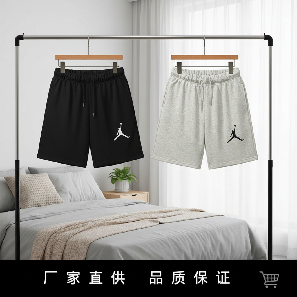 Nike Jordan Series black sports shorts, made of premium cotton for comfort and breathability, feature an adjustable drawstring waist and Jumpman logo, perfect for street style, workouts, and daily wear.