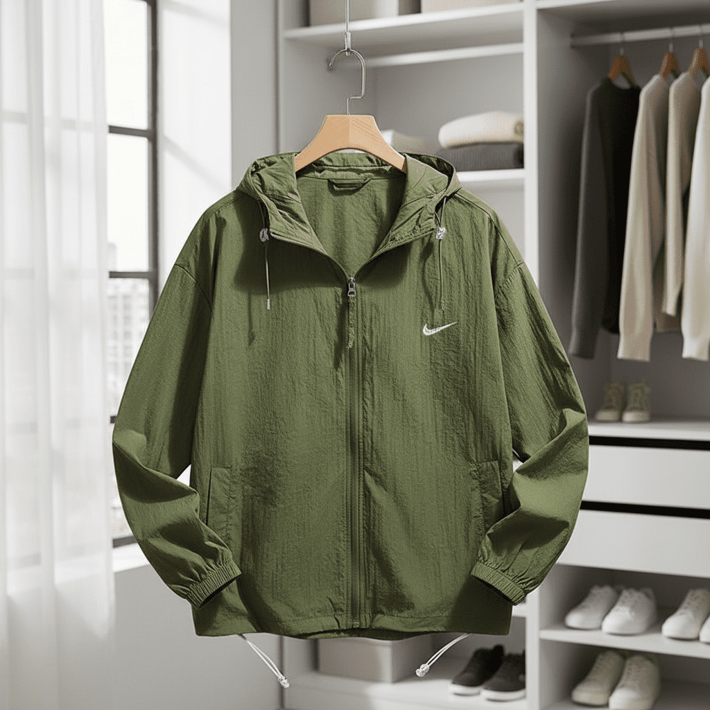 Nike Windbreaker Jacket Men Green Lightweight Hooded Coat