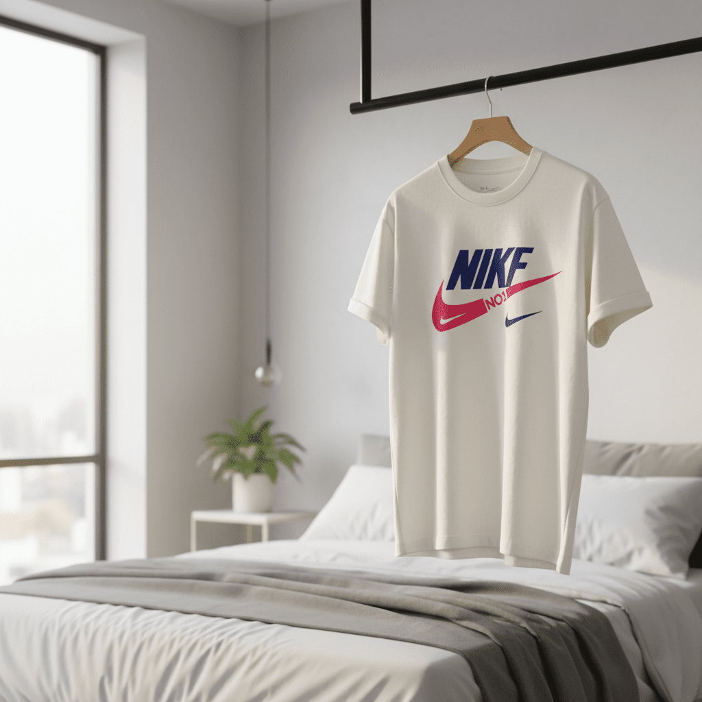 Nike White Cotton Trendy T-Shirt with NIKEF letters, pink-blue swoosh and NO1 logo, breathable comfort, unisex street style for casual daily wear with a bold personality.