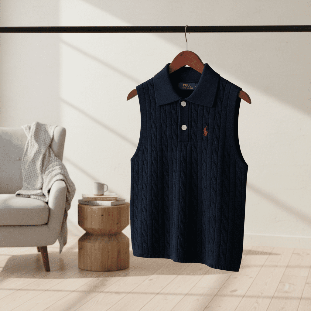 Home / Sweaters/ Ralph Lauren Cable Knit Sleeveless Polo Sweater
