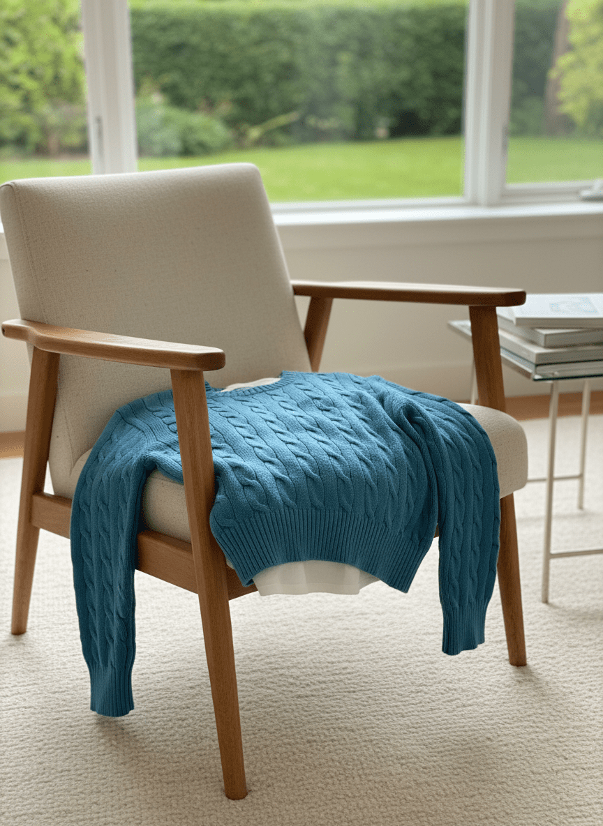 Ralph Lauren blue-green cable knit sweater made from premium soft fabric, featuring the iconic pony logo, classic crew neck, unisex design, perfect for casual wear and daily commute.