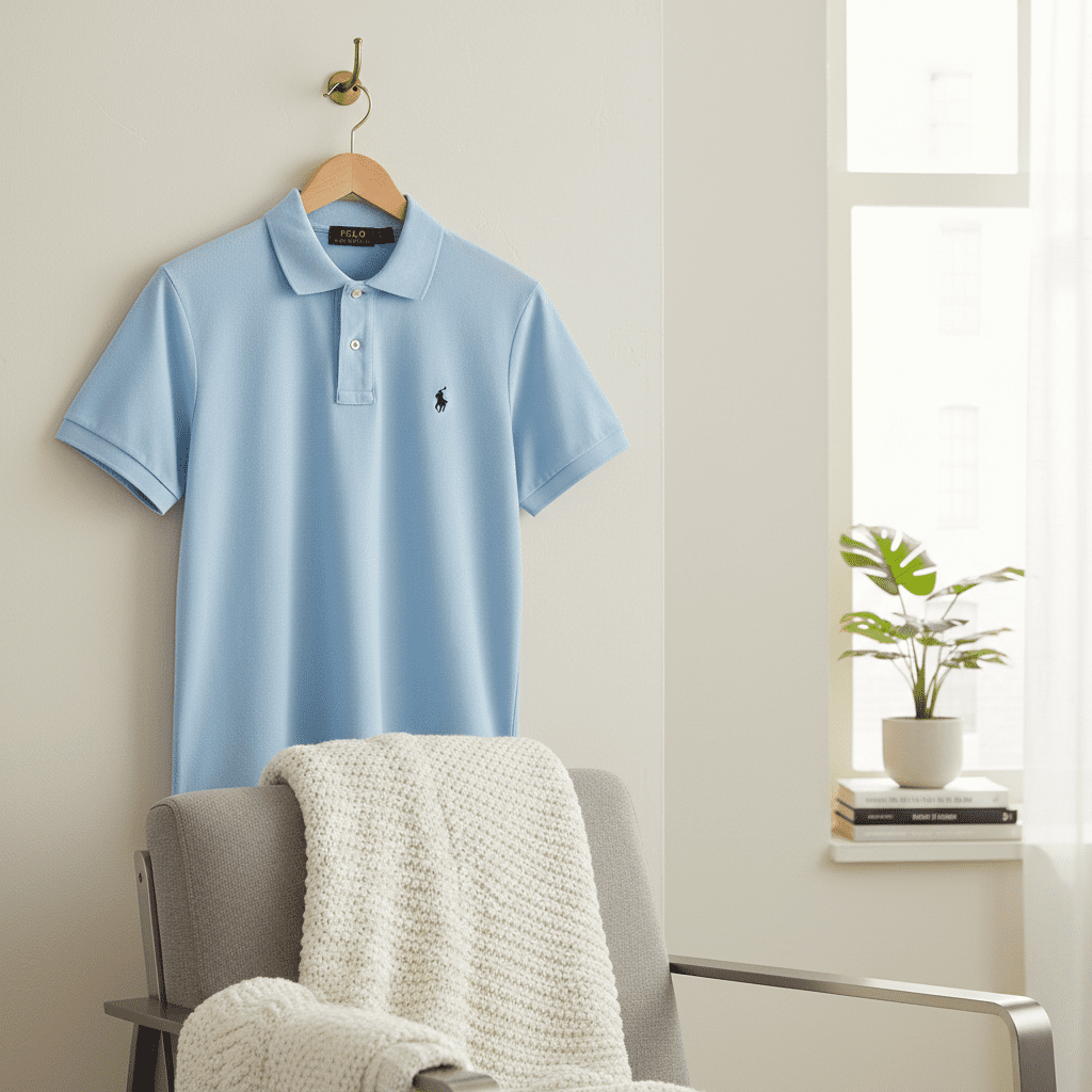 Ralph Lauren Polo Series Light Blue Polo Shirt, made from premium cotton for soft breathable comfort, classic collar design with iconic pony logo, unisex style perfect for work or casual wear.