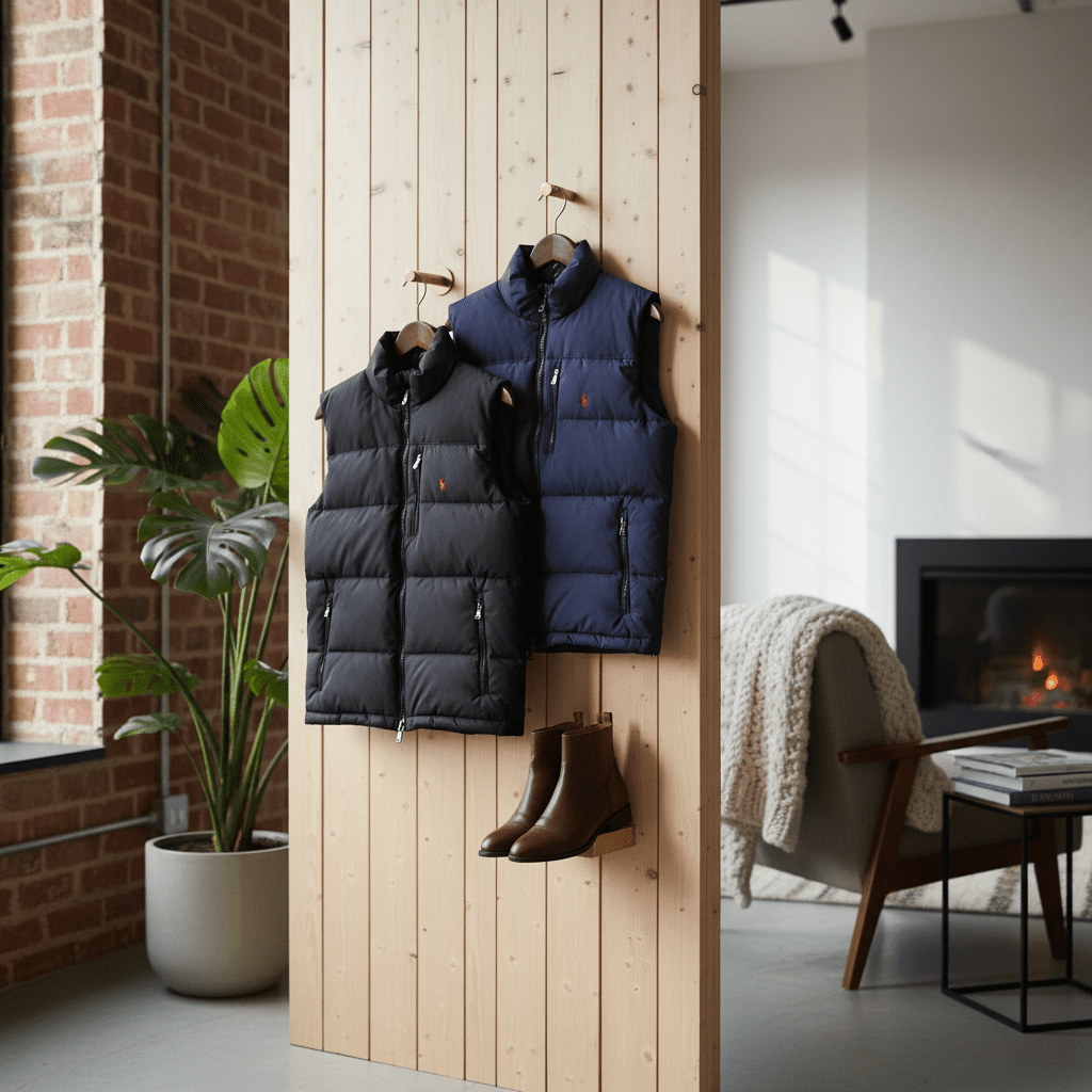 Ralph Lauren Classic Black Down Vest – Lightweight warm fabric, stand-up collar windproof design, iconic pony logo on chest, timeless casual style for men and women, perfect for everyday fashion.