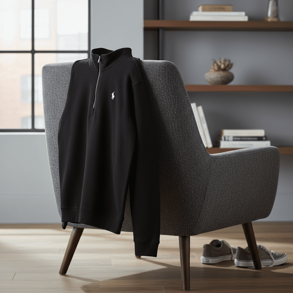 Ralph Lauren Polo Half-Zip Black Sweatshirt, crafted from premium cotton with iconic pony logo on chest, unisex design for casual comfort, warm, stylish, and perfect for everyday wear.