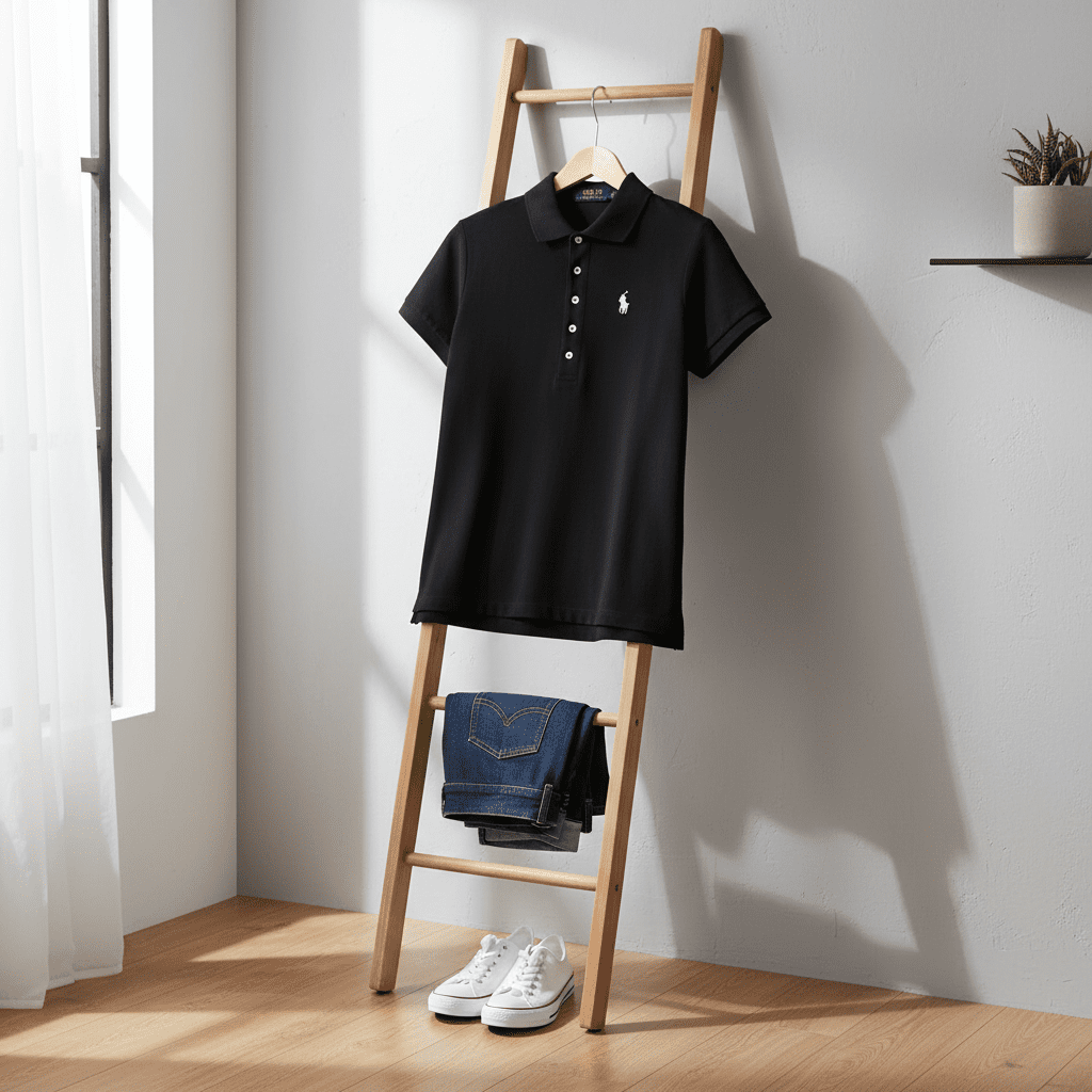 Ralph Lauren Polo Women’s Black Short Sleeve Shirt, soft breathable cotton, classic collar with button placket, signature pony embroidery, elegant American casual style for daily wear and commute.