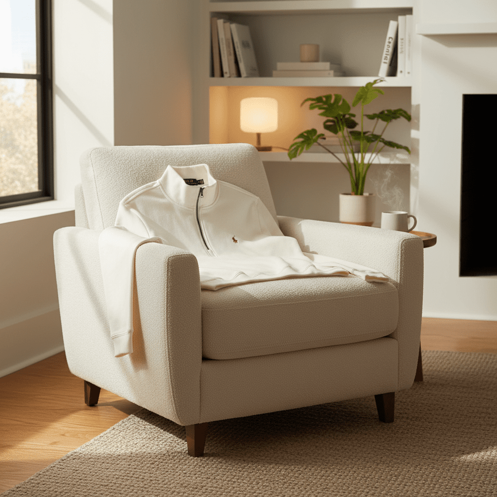 Ralph Lauren POLO off-white half-zip cotton sweatshirt, soft premium fabric with signature pony logo on chest, unisex American casual style, versatile for daily wear with timeless elegance.