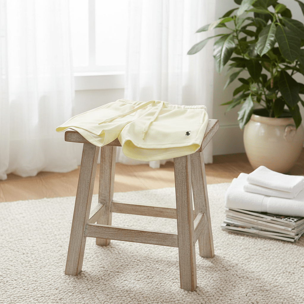 Ralph Lauren Classic Beige Women’s Shorts, soft fabric, drawstring waist, side Polo logo, timeless American casual style perfect for everyday wear.