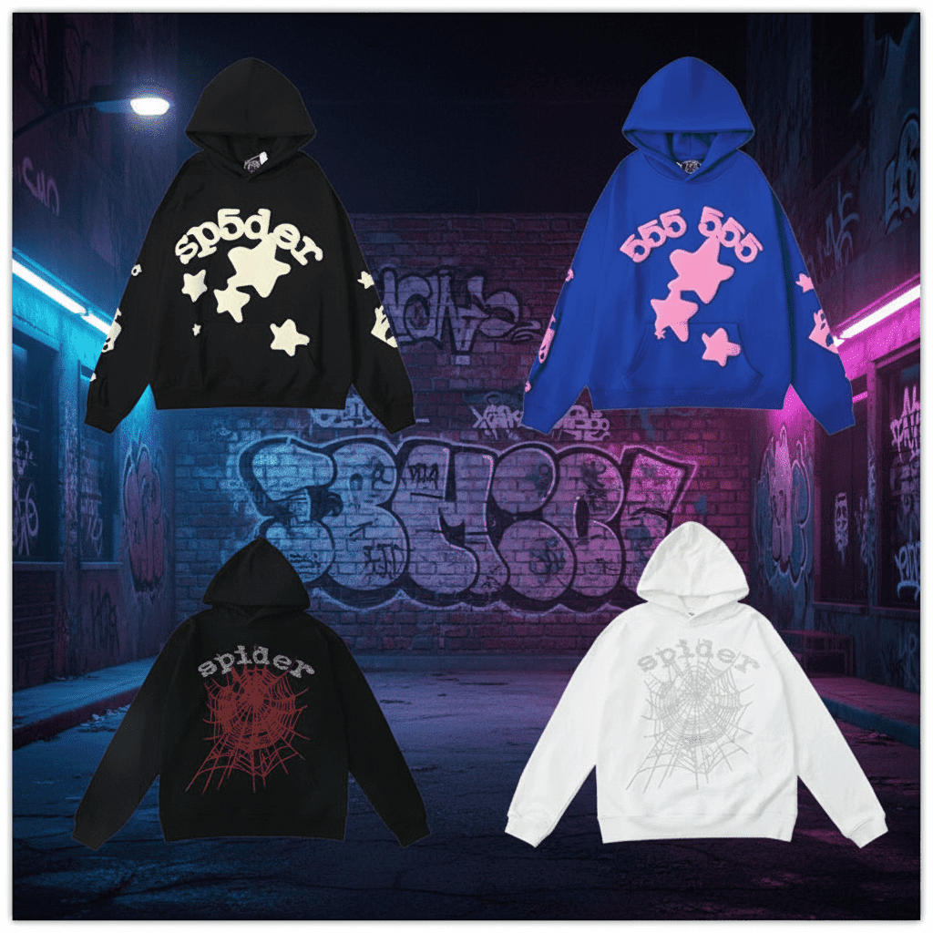 Step into street style with a unisex cotton-blend hoodie featuring bold spider-themed graphics, available in black, blue, and white for a head-turning look.