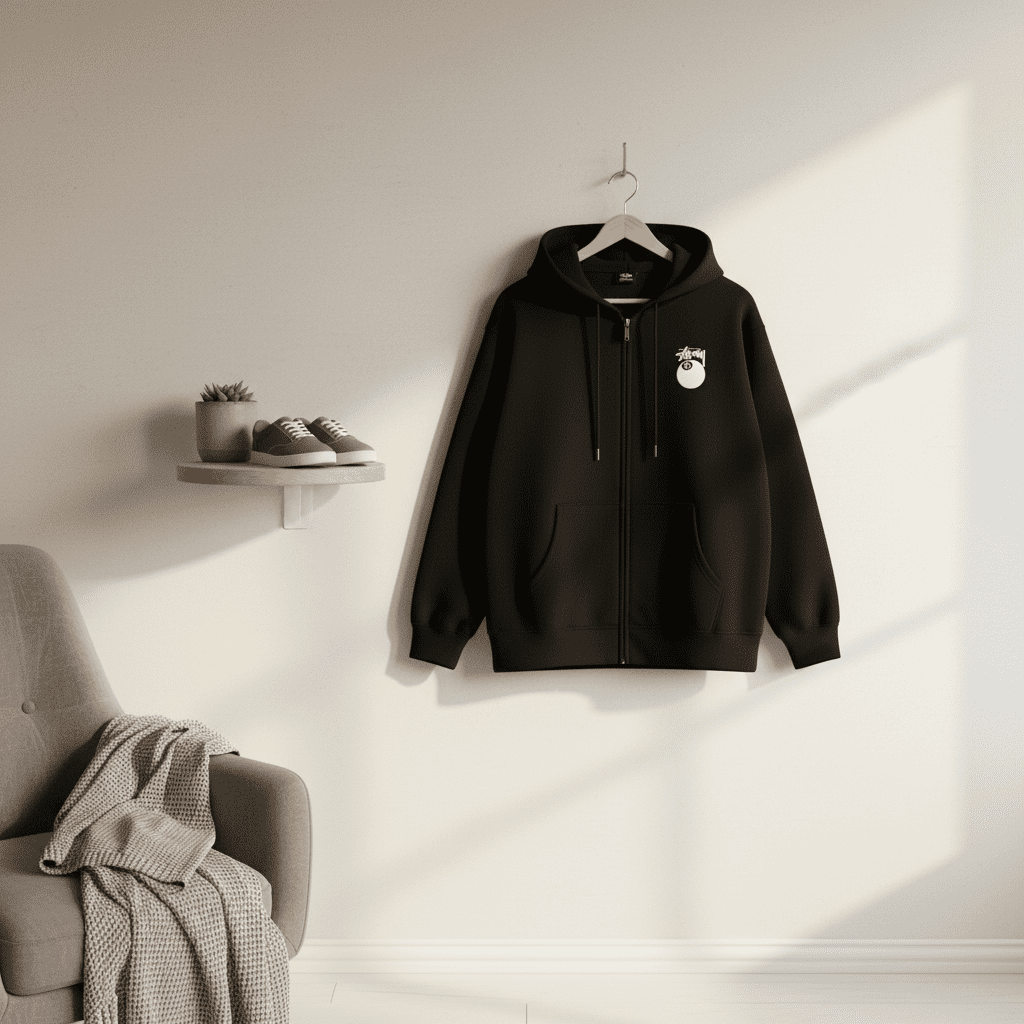 Stussy 8 Ball Black Zip Up Hoodie Sweatshirt