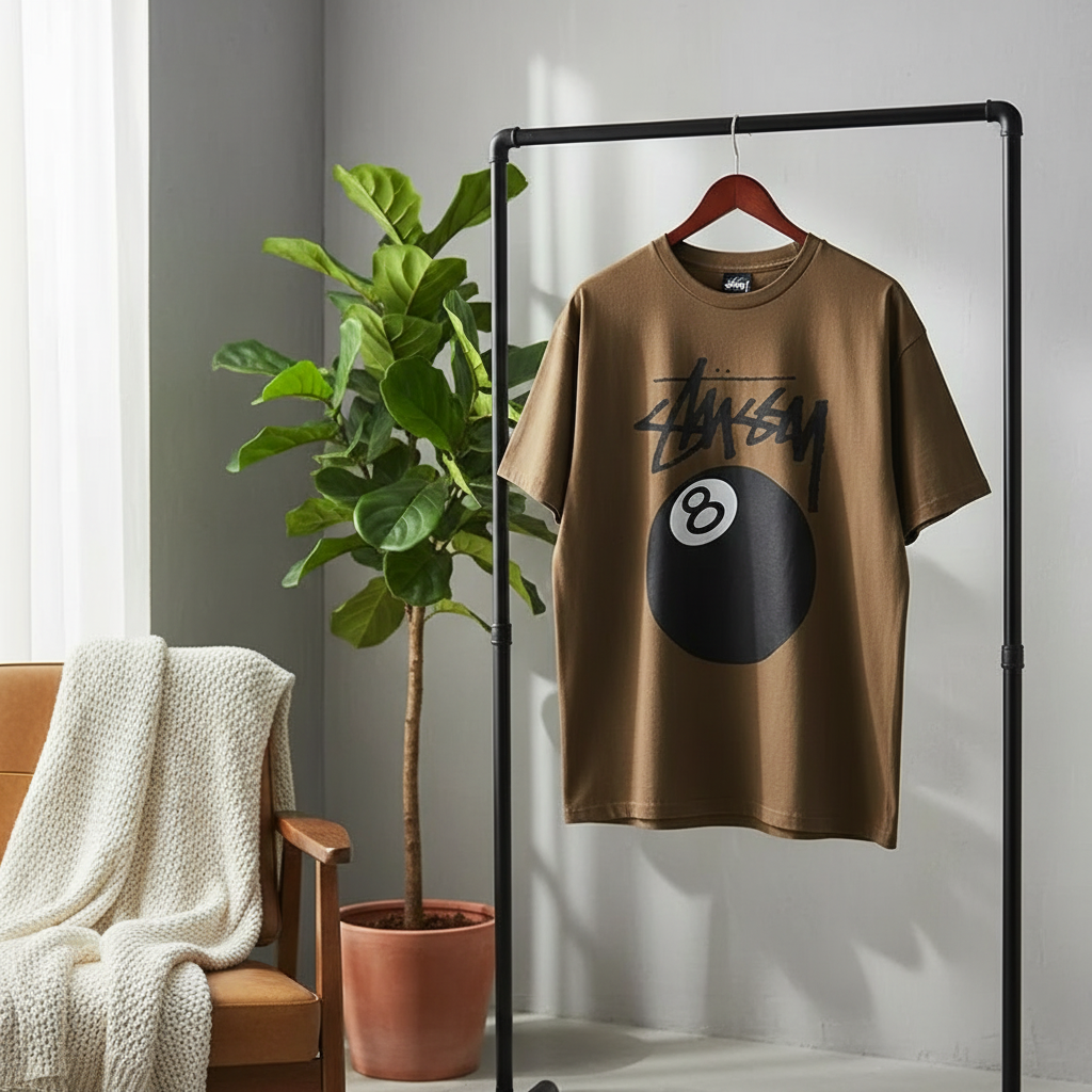 Stussy 8 Ball Brown Graphic Streetwear T-Shirt