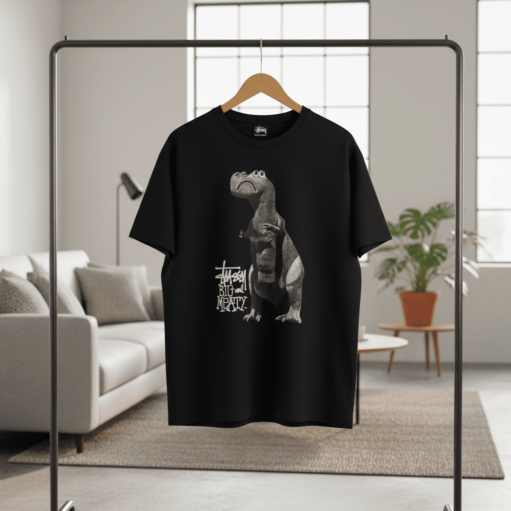 Stussy Big Meaty Dinosaur Graphic Black T-Shirt