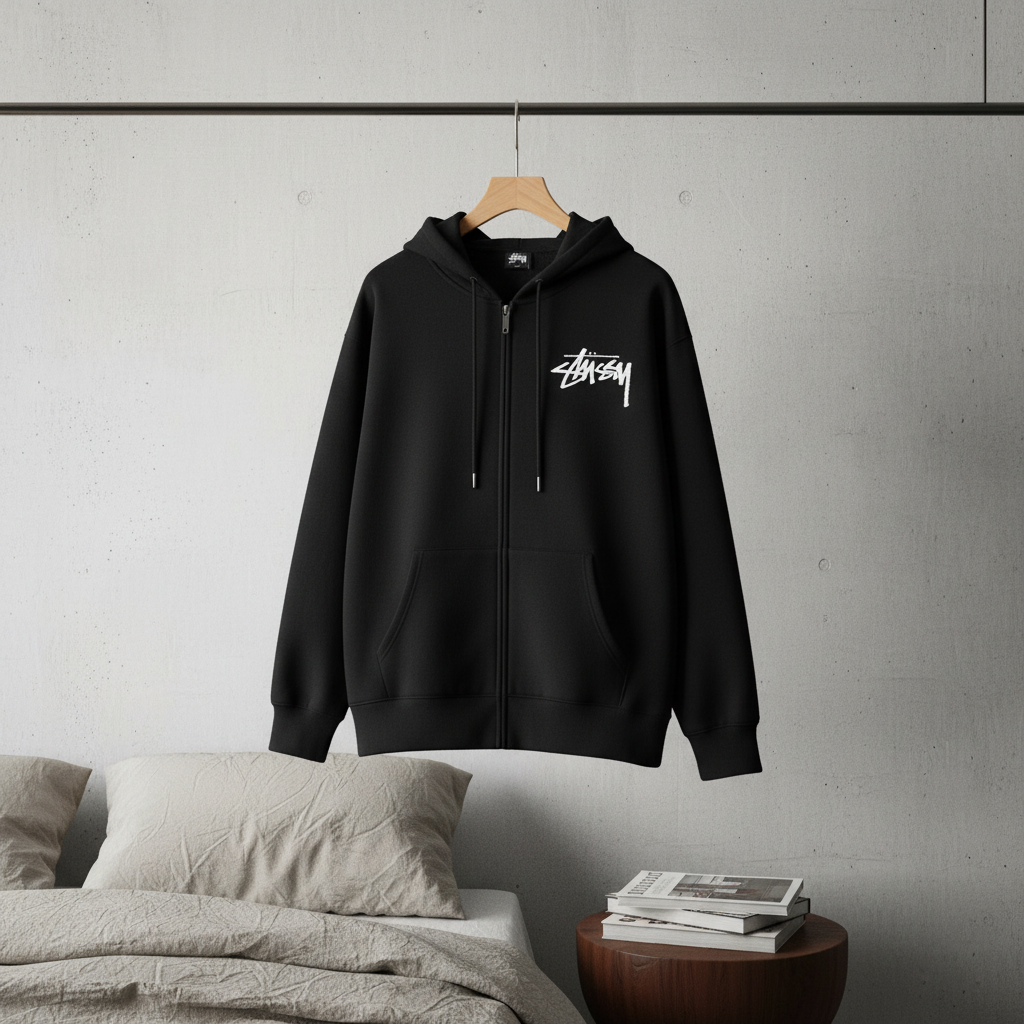 Home / Hoodies/ Stussy Black Graphic Print Zip Up Hoodie
