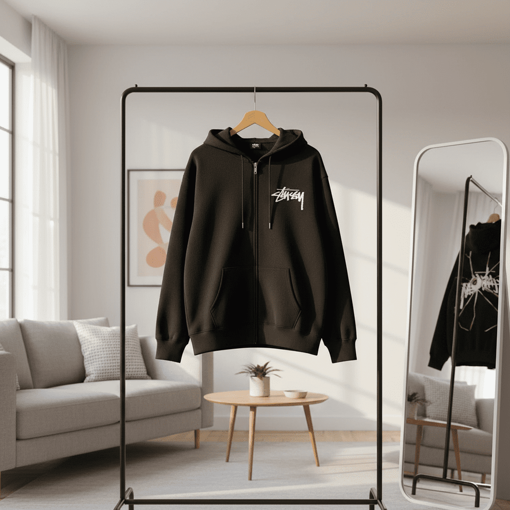 Home / Hoodies/ Stussy Black Hoodie Streetwear Pullover Zip Sweatshirt