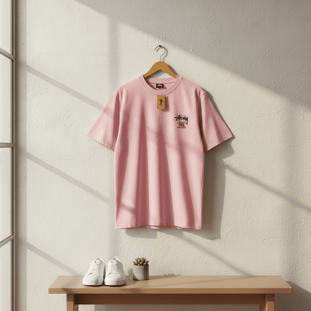 Home / T-Shirts/ Stussy Classic Logo Pink Casual Cotton T-Shirt