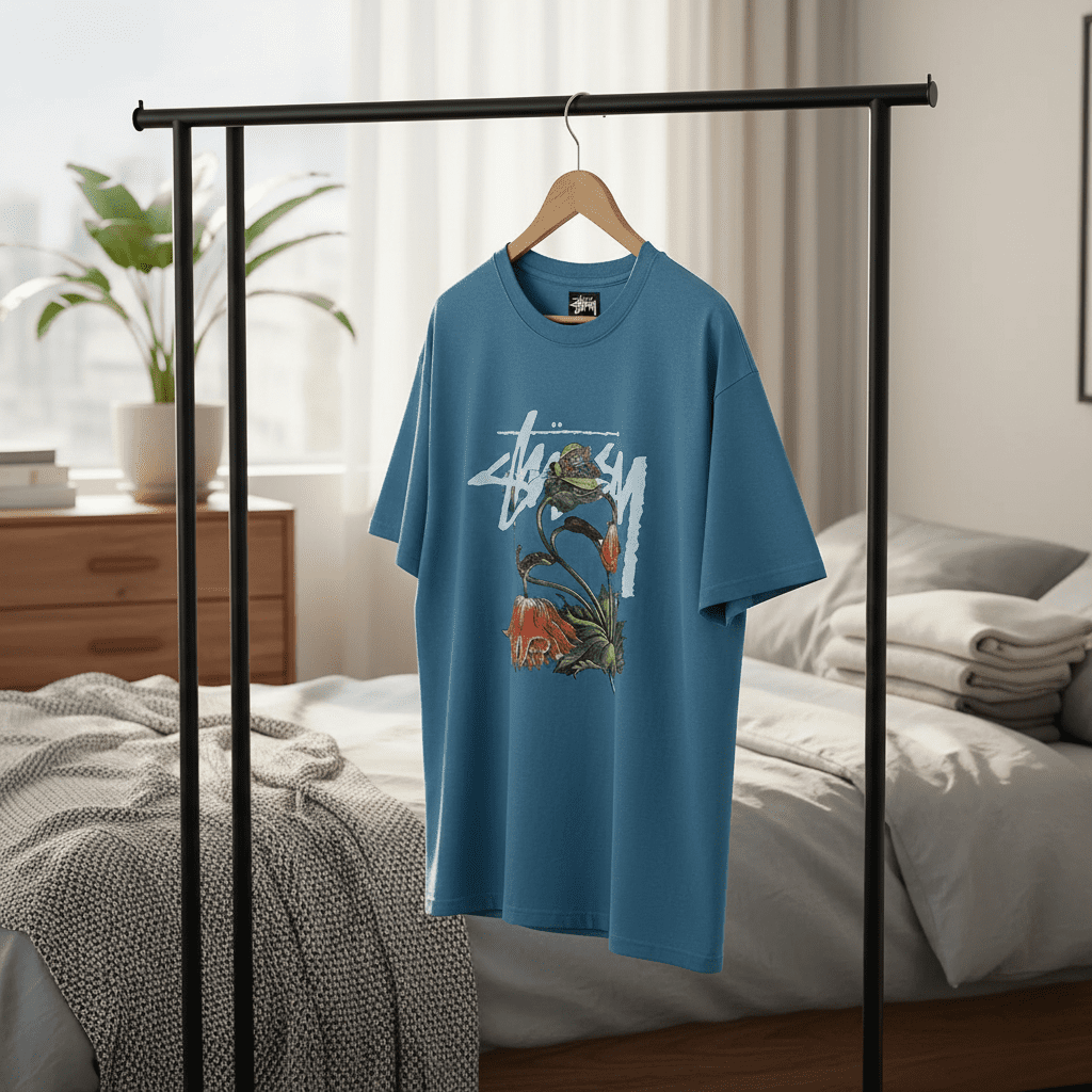 Stussy Floral Graphic Blue Streetwear T-Shirt