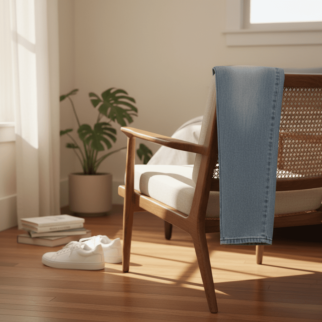 Stussy Light Blue Straight Jeans crafted from washed denim for breathable comfort, featuring signature leather patch detail on back pocket, gender-neutral fit, perfect for streetwear and daily style.