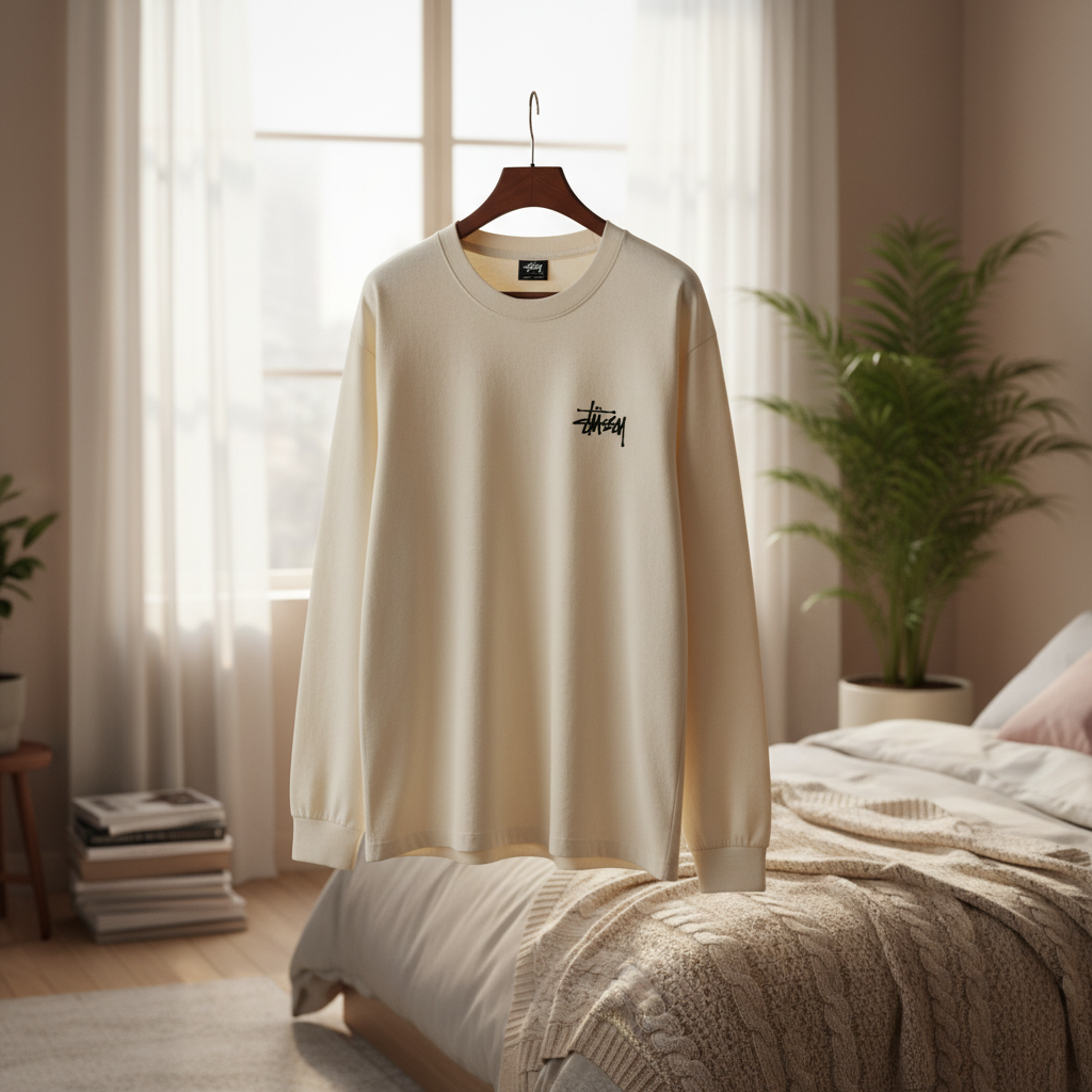 Stussy Logo Print Beige Long Sleeve T-Shirt