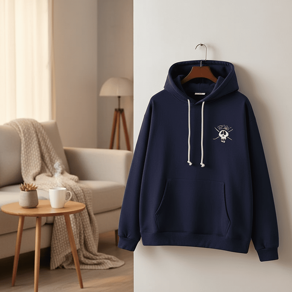 Stussy Deep Blue Hoodie – soft cotton fabric, adjustable drawstring hood, kangaroo pocket, skull and cross graphics, unisex streetwear style for daily casual looks full of attitude.