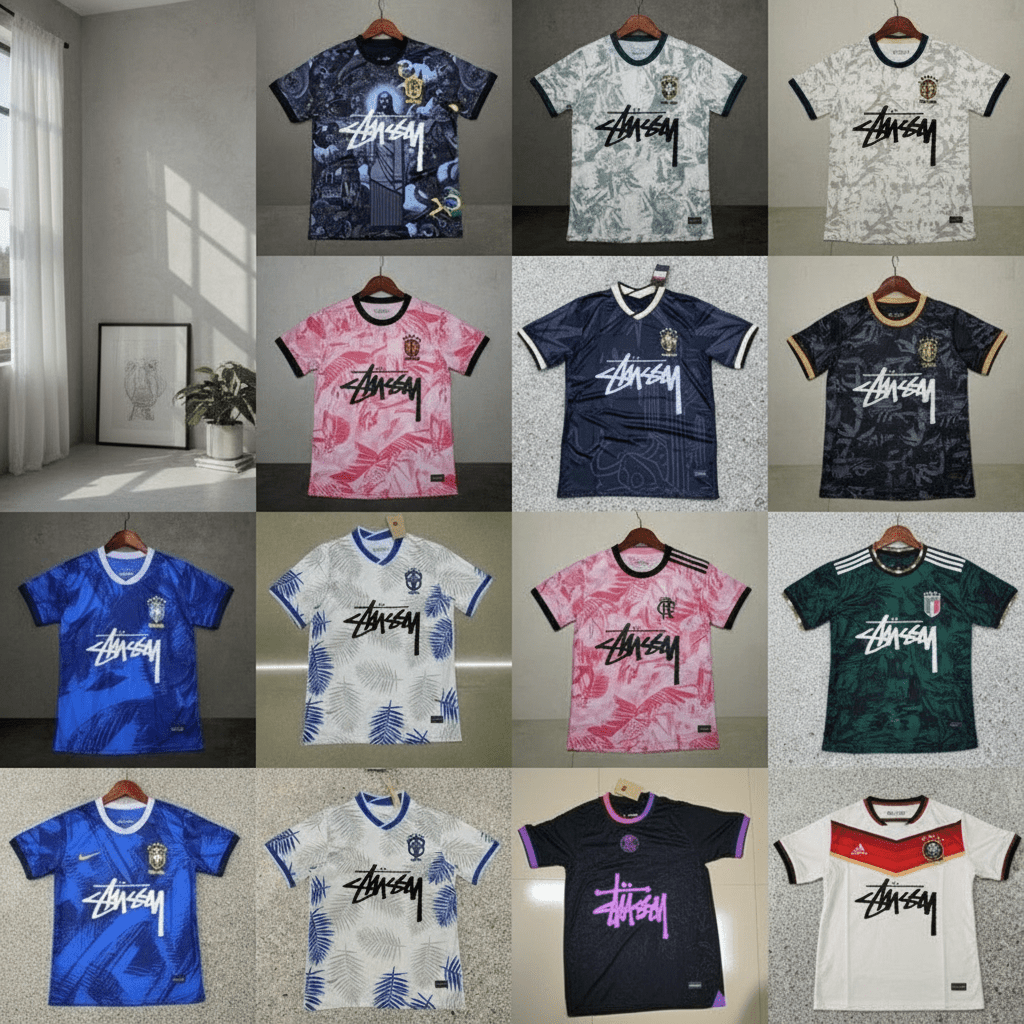 Stussy Street Style Black Cotton T-Shirt, breathable and soft, featuring Jesus-inspired print with Brazilian elements, classic crew neck, unisex design, perfect for a bold, fashion-forward look.