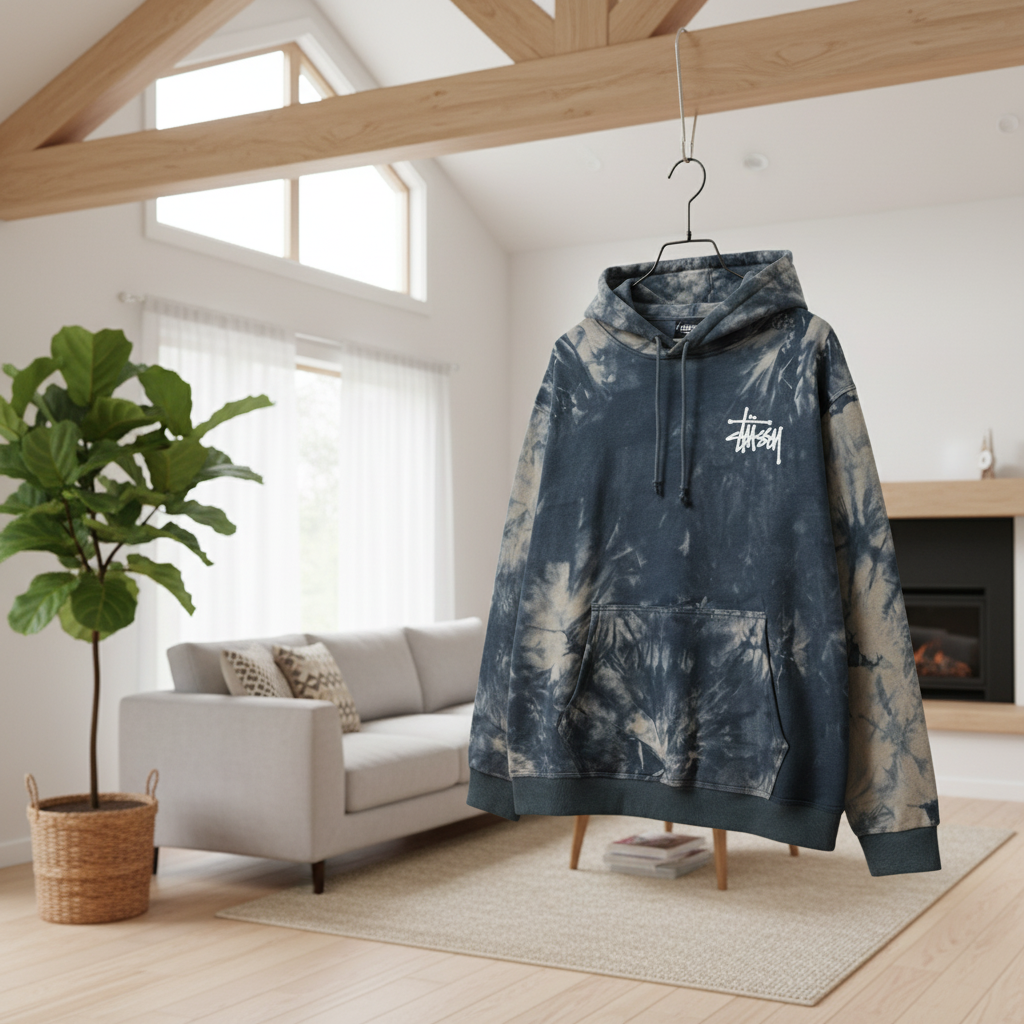 Stussy Black Gray Tie-Dye Hoodie – soft breathable cotton, iconic graffiti logo on front, classic hood with kangaroo pocket, unisex street style for daily wear, trendy and comfortable.