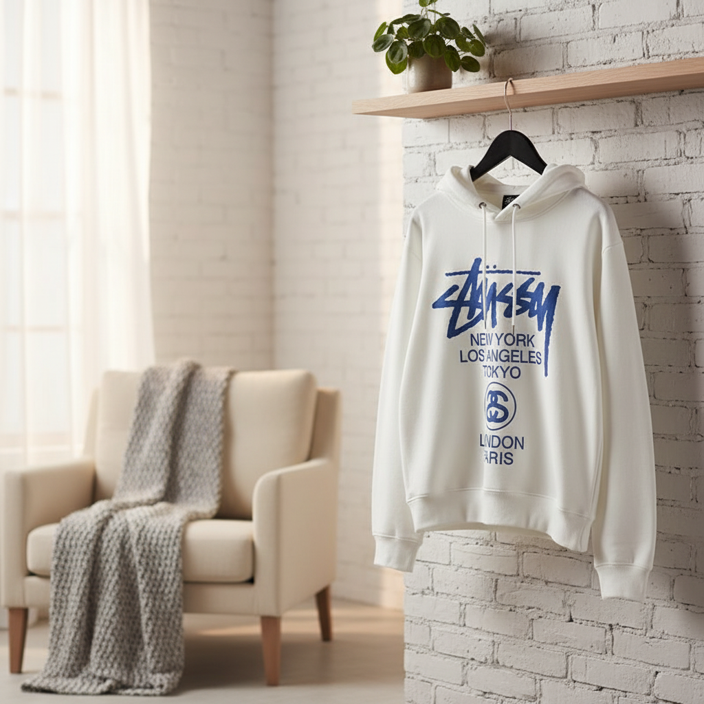 Home / Hoodies/ Stussy White Hoodie Streetwear Pullover Sweatshirt